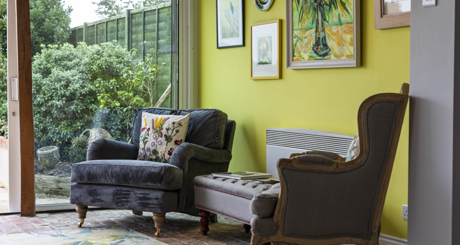 The Beaulieu River sparkles beyond the surrounding fields, and the wide acres of the New Forest are just down the lane. Freshly redesigned, Little Exbury exudes comfort, style and warmth. The interiors are cheerful and inviting. There are vibrant colour pops, an orange sofa here, a citrus wall there, and lots of eye-catching original artwork from the Palais des Vaches – an exceptional gallery found further along the lane which was established by Little Exbury’s owners. Pop into this inspirational venue and maybe pick up a piece to take home – a lovely reminder of your New Forest escape!
