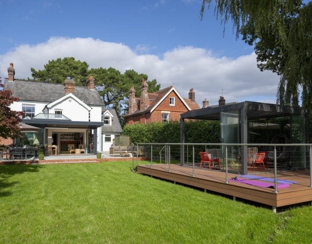 Get-together spaces include a big farmhouse kitchen-breakfast room, with cabinets painted a striking shade of leaf, that’s open to a richly decorated dining room, spot on for cosy suppers. Alternatively, along the back of the property is a funky, light-drenched, sociable ‘garden room’ with dining and sitting areas, wood-burning stove and mini kitchen – perfect for preparing drinks and nibbles to take into the garden. Simply fold back the full length glazed doors to open up the room to the glorious, south-facing gardens.